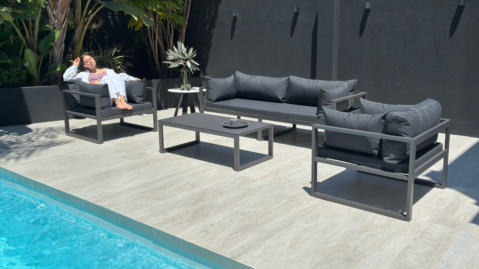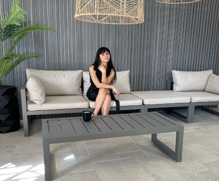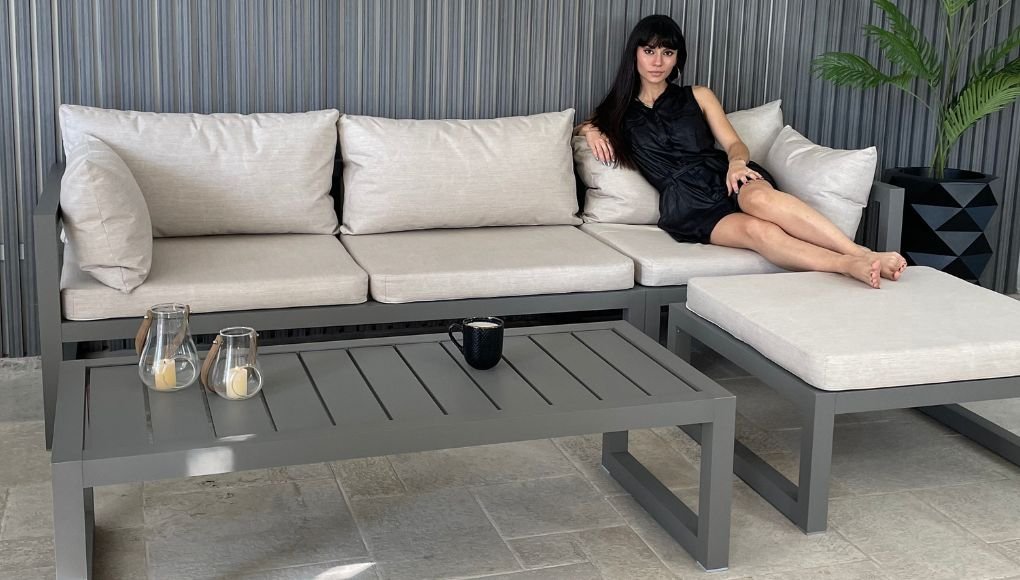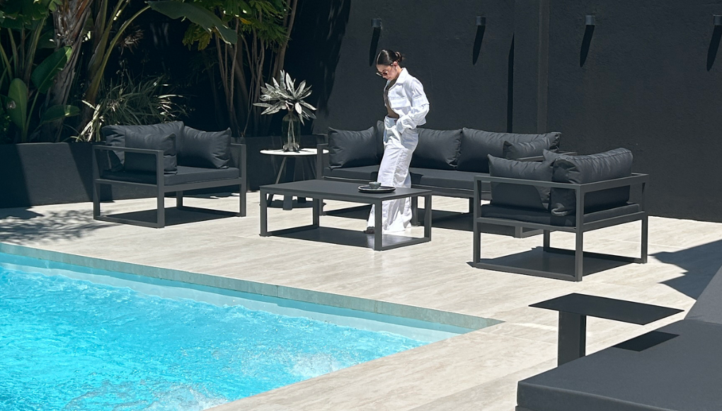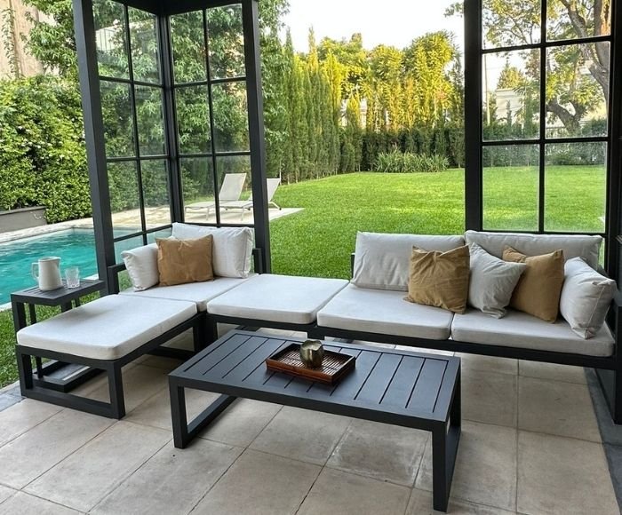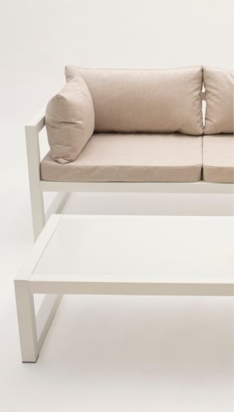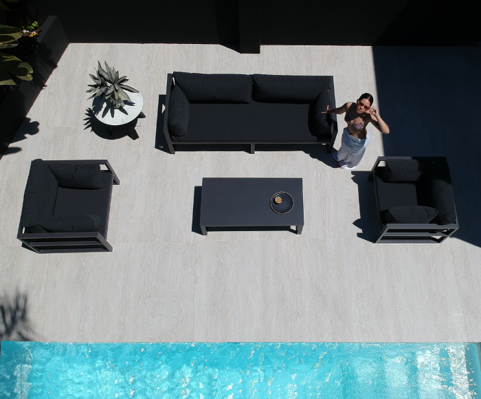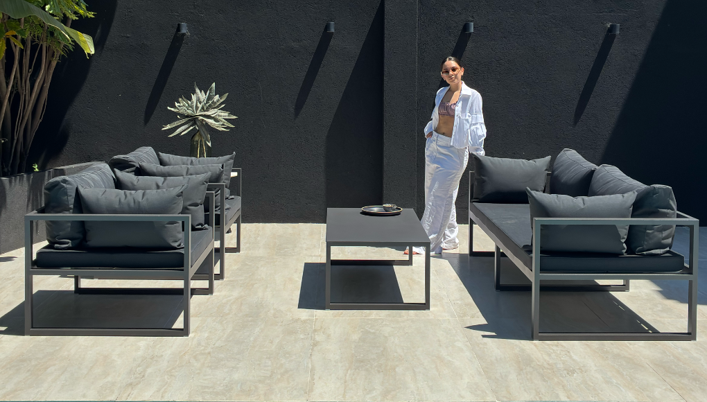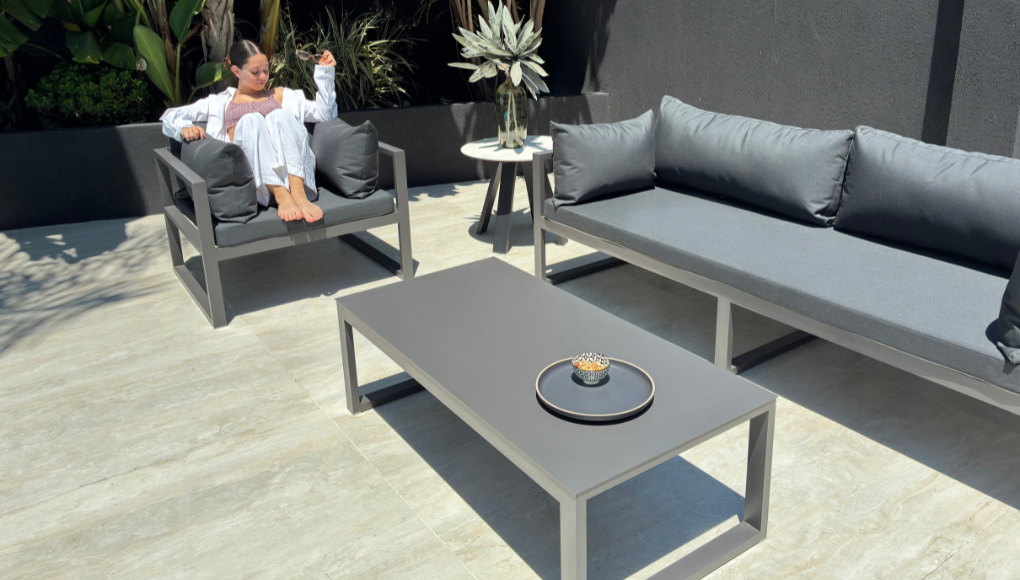Su diseño de líneas depuradas sobre una estructura tubular delicada de aluminio se integra perfectamente al living exterior.
