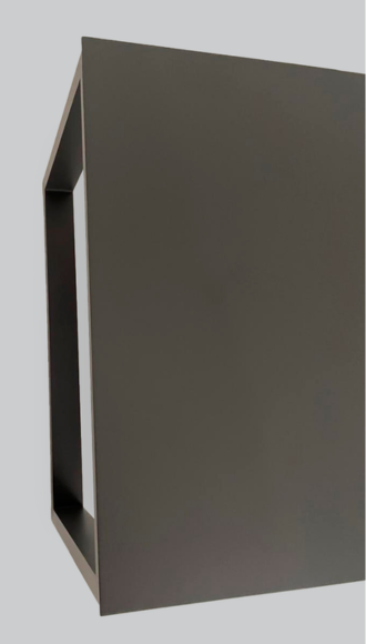La superficie se puede personalizar eligiendo entre lámina lisa de aluminio de 3mm, perfiles de aluminio de 10cm, placa de aluminio compuesto o Fundermax®, con variadas tonalidades para combinar.
