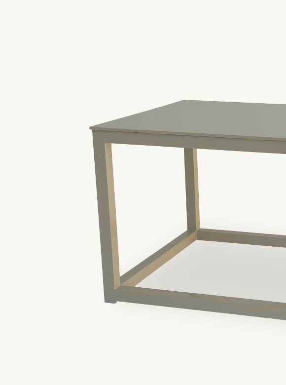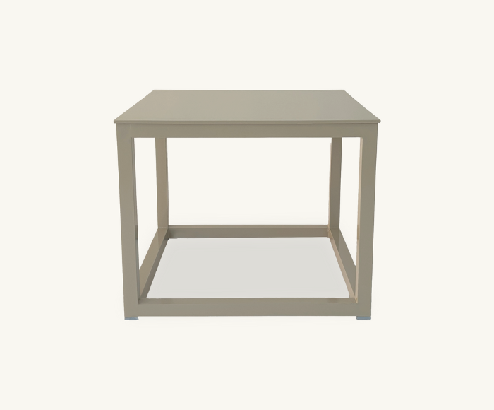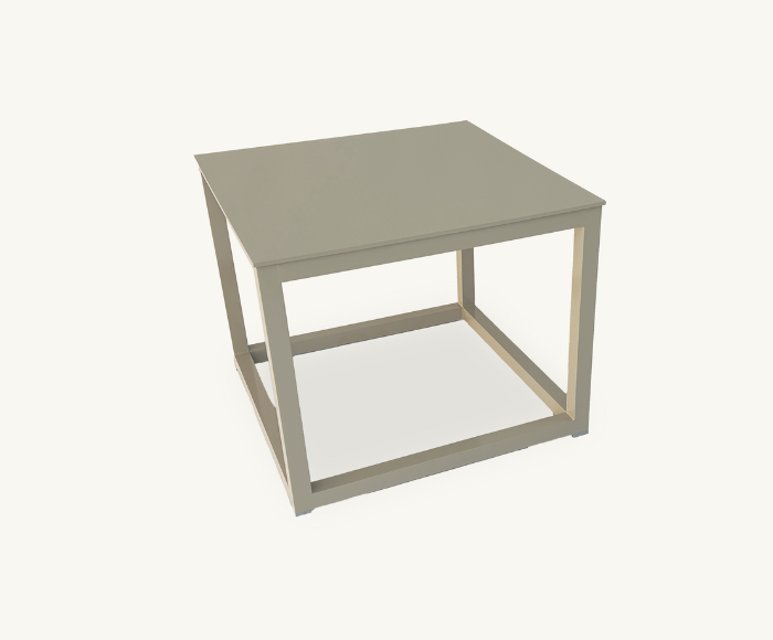 Su diseño cúbico y versátil permite integrarla en múltiples composiciones, funcionando tanto como mesa auxiliar como acento de diseño en terrazas, jardines o galerías.