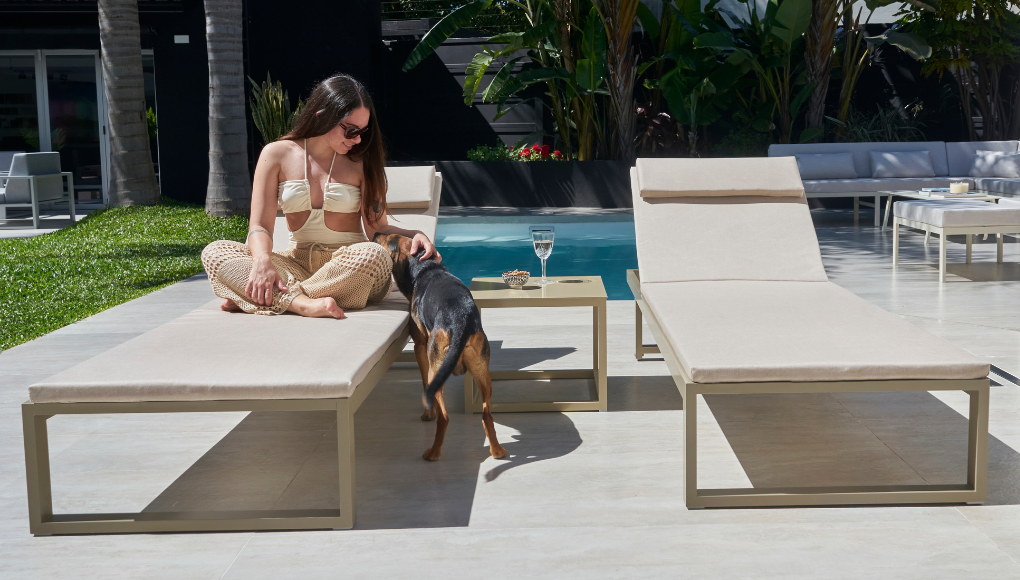 Fabricada íntegramente en aluminio, es liviana, durable y apta para uso intensivo en exteriores, manteniendo su estética impecable con mínimo mantenimiento.