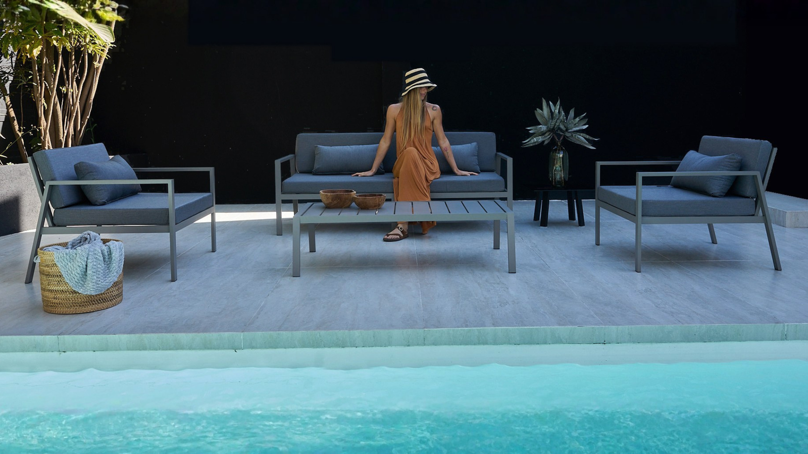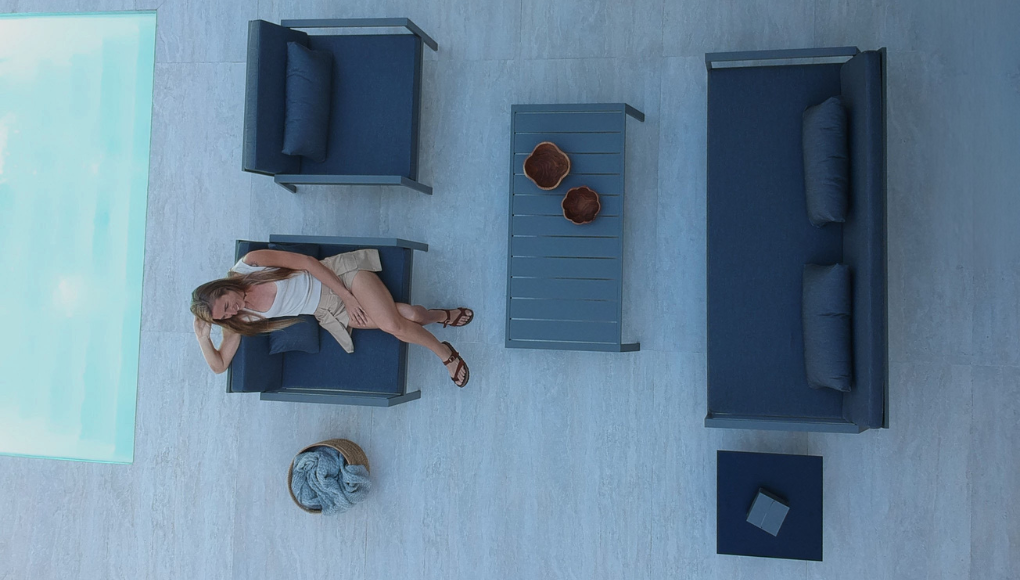 Tapizados en telas técnicas de alta gama como Sunbrella®, Sauleda® y Agora®, disponibles en una paleta diversa de colores, aportan elegancia y versatilidad para personalizar cada espacio.