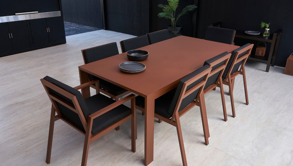 El Sillón Zyra es el compeñero perfecto para mesas de comedor exteriores, fusionando practicidad, diseño y comodidad en un mismo asiento.