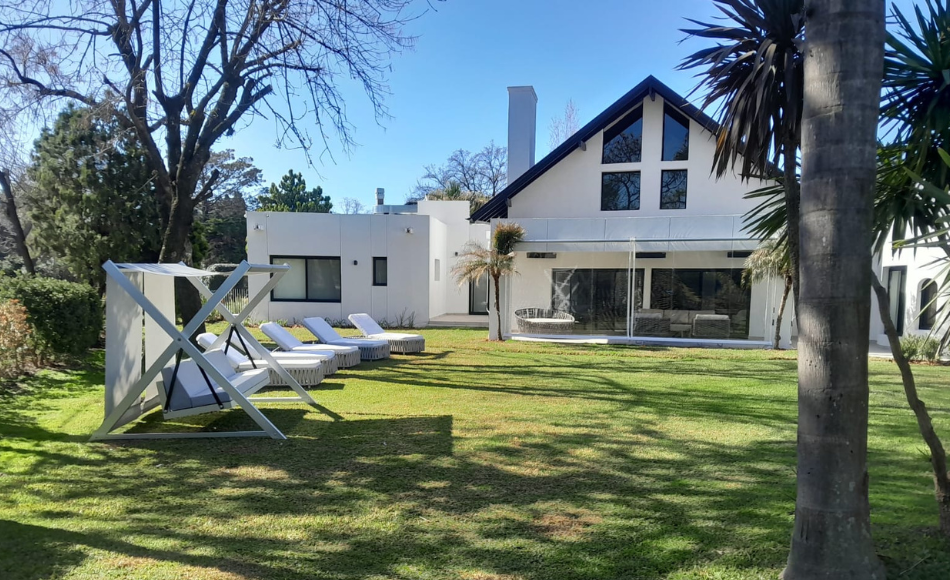 En los jardines de ZB House en Pilar, Buenos Aires, el mobiliario Mögen transforma el espacio exterior en un refugio de sofisticación y confort.